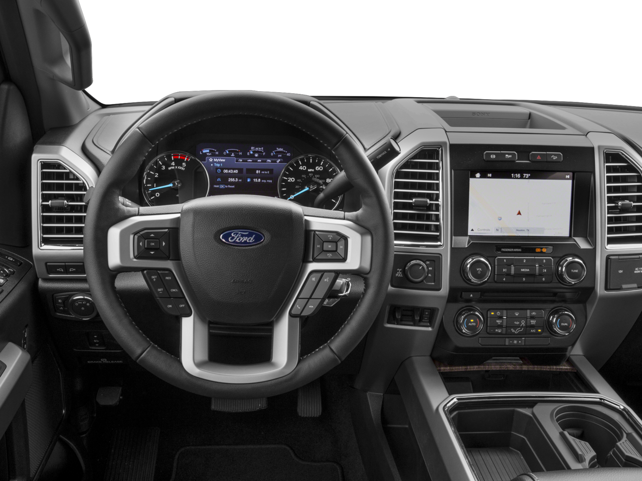 FX4 Off-Road Package, GVWR: 10,000 lb Payload Package, Lariat Ultimate Package (LED Box Lighting, Remote Start System, Tailgate Step & Handle, Twin Panel Power Moonroof, and Voice-Activated Navigation), Order Code 608A, 4WD, 10 Speakers, 110V/400W Outlet, 4-Wheel Disc Brakes, 5 Chrome Tubular Step Bar, ABS brakes, Adjustable pedals, Air Conditioning, Alloy wheels, AM/FM radio: SiriusXM, Auto-dimming Rear-View mirror, Automatic temperature control, BLIS Blind Spot Information System, Brake assist, Bumpers: chrome, CD player, Compass, Delay-off headlights, Driver door bin, Driver vanity mirror, Dual front impact airbags, Dual front side impact airbags, Electronic Stability Control, Emergency communication system: SYNC 3 911 Assist, Exterior Parking Camera Rear, Flow-Through Console, Front anti-roll bar, Front Bucket Seats, Front Center Armrest, Front dual zone A/C, Front fog lights, Front Leather Seating Surfaces 40/Console/40, Front reading lights, Fully automatic headlights, Heated door mirrors, Illuminated entry, Leather steering wheel, Low tire pressure warning, Outside temperature display, Overhead airbag, Overhead console, Panic alarm, Passenger door bin, Passenger vanity mirror, Power door mirrors, Power driver seat, Power passenger seat, Power steering, Power windows, Radio data system, Radio: Premium Sony Audio w/Single-CD/MP3 Player, Rear Parking Sensors, Rear reading lights, Rear seat center armrest, Rear step bumper, Rear Wheel Well Liners (Pre-Installed), Rear window defroster, Remote keyless entry, Security system, SiriusXM Radio, Speed control, Split folding rear seat, Steering wheel mounted audio controls, SYNC 3 Communications & Entertainment System, Tachometer, Telescoping steering wheel, Tilt steering wheel, Traction control, Trip computer, Turn signal indicator mirrors, Universal Garage Door Opener (UGDO), Upfitter Switches (6), Variably intermittent wipers, Wheels: 18 Bright Machined Cast Aluminum, and Wheels: 20 Bright Machined Cast Aluminum.