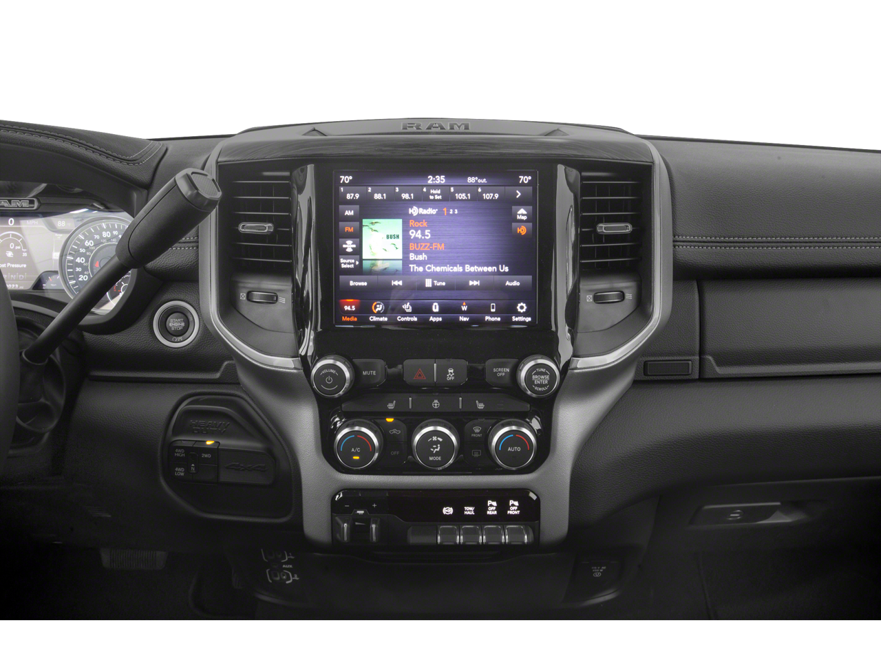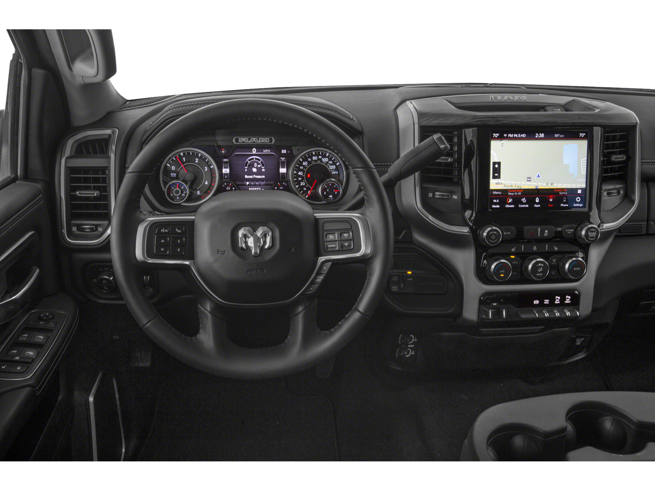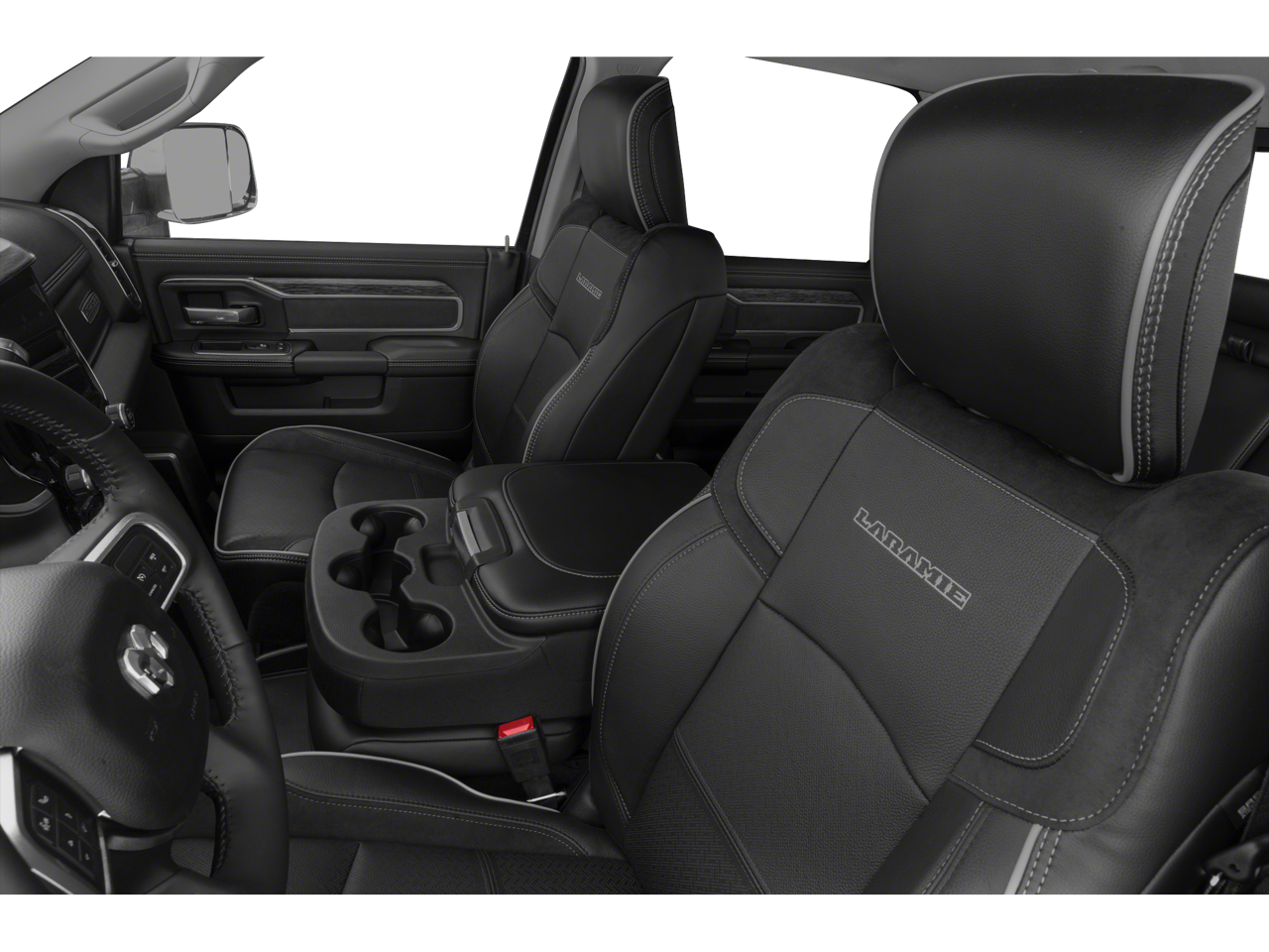 Cold Weather Group (Engine Block Heater and Winter Front Grille Cover), Laramie Level 1 Equipment Group (2nd Row In Floor Storage Bins, Auto High Beam Headlamp Control, Blind Spot & Cross Path Detection, Exterior Mirrors w/Memory, Foam Bottle Insert (Door Trim Panel), Mirror-Mounted Aux Reverse Lamps, Power Adjustable Convex Aux Mirrors, Power Adjustable Pedals w/Memory, Power Chrome Tow Mirrors w/Convex Spotter & Memory, Radio/Driver Seat/Mirrors/Pedals Memory, Rain Sensitive Windshield Wipers, Remote Tailgate Release, Single Disc Remote CD Player, and Ventilated Front Seats), Off Road Package (Front Performance Tuned Shock Absorbers, Hill Descent Control, Off Road Decal, Rear Performance Tuned Shock Absorbers, and Tow Hooks), Protection Group, Quick Order Package 2HH Laramie, Sport Appearance Package (Black Interior Accents, Body Color Door Handles, Body Color Grille Surround, Painted Front Bumper, Painted Rear Bumper, and Sport Decal), Towing Technology Group (CTR Stop Lamp w/Cargo View Camera, Surround View Camera System, and Trailer Reverse Guidance), 1-Year SiriusXM Guardian Trial, 10 Speakers, 115V Auxiliary Rear Power Outlet, 12 Touchscreen Display, 2 Way Rear Headrest Seat, 220 Amp Alternator, 3.73 Axle Ratio, 4 Way Front Headrests, 4-Wheel Disc Brakes, 5-Year SiriusXM Traffic Service, 5-Year SiriusXM Travel Link Service, 5th Wheel/Gooseneck Towing Prep Group, ABS brakes, Active Noise Control System, Adjustable pedals, Air Conditioning, Alloy wheels, AM/FM radio: SiriusXM, Anti-Spin Differential Rear Axle, Apple CarPlay, Apple CarPlay/Android Auto, Auto-dimming Rear-View mirror, Automatic temperature control, Brake assist, Bumpers: chrome, Compass, Delay-off headlights, Disassociated Touchscreen Display, Driver door bin, Driver vanity mirror, Dual front impact airbags, Dual front side impact airbags, Electronic Stability Control, Electronically Controlled Throttle, For Details Visit DriveUconnect.com, Front anti-roll bar, Front Center Armrest w/Storage, Front dual zone A/C, Front fog lights, Front reading lights, Front Seat Back Map Pockets, Fully automatic headlights, Garage door transmitter, Google Android Auto, GPS Antenna Input, GPS Navigation, HD Radio, Heated door mirrors, Heated Front Seats, Heated front seats, Heated Steering Wheel, Heated steering wheel, Illuminated entry, Integrated Voice Command w/Bluetooth®, Leather steering wheel, Leather Trim 40/20/40 Bench Seat, LED Bed Lighting, Low tire pressure warning, Occupant sensing airbag, Outside temperature display, Overhead airbag, Overhead console, Panic alarm, ParkSense Front/Rear Park Assist System, ParkView Rear Back-Up Camera, Passenger door bin, Passenger vanity mirror, Power 2-Way Driver Lumbar Adjust, Power 2-Way Passenger Lumbar Adjust, Power Adjust 8-Way Driver Seat, Power Adjust 8-Way Front Passenger Seat, Power door mirrors, Power driver seat, Power passenger seat, Power steering, Power windows, Radio data system, Radio: Uconnect 12.0 w/Navigation, Radio: Uconnect 4 w/8.4 Display, Rear 60/40 Folding Seat, Rear anti-roll bar, Rear reading lights, Rear seat center armrest, Rear step bumper, Rear window defroster, Remote keyless entry, Security system, Selectable Tire Fill Alert, SiriusXM Satellite Radio, SiriusXM Traffic Plus, SiriusXM Travel Link, SiriusXM w/360L, Speed control, Split folding rear seat, Steering wheel mounted audio controls, Tachometer, Tilt steering wheel, Tip Start, Tire Fill Alert (DISC), Traction control, Trip computer, Turn signal indicator mirrors, USB Host Flip, Variably intermittent wipers, Vendor Painted Cargo Box Tracking, Voltmeter, and Wheels: 18 x 8.0 Polished AluminuM.