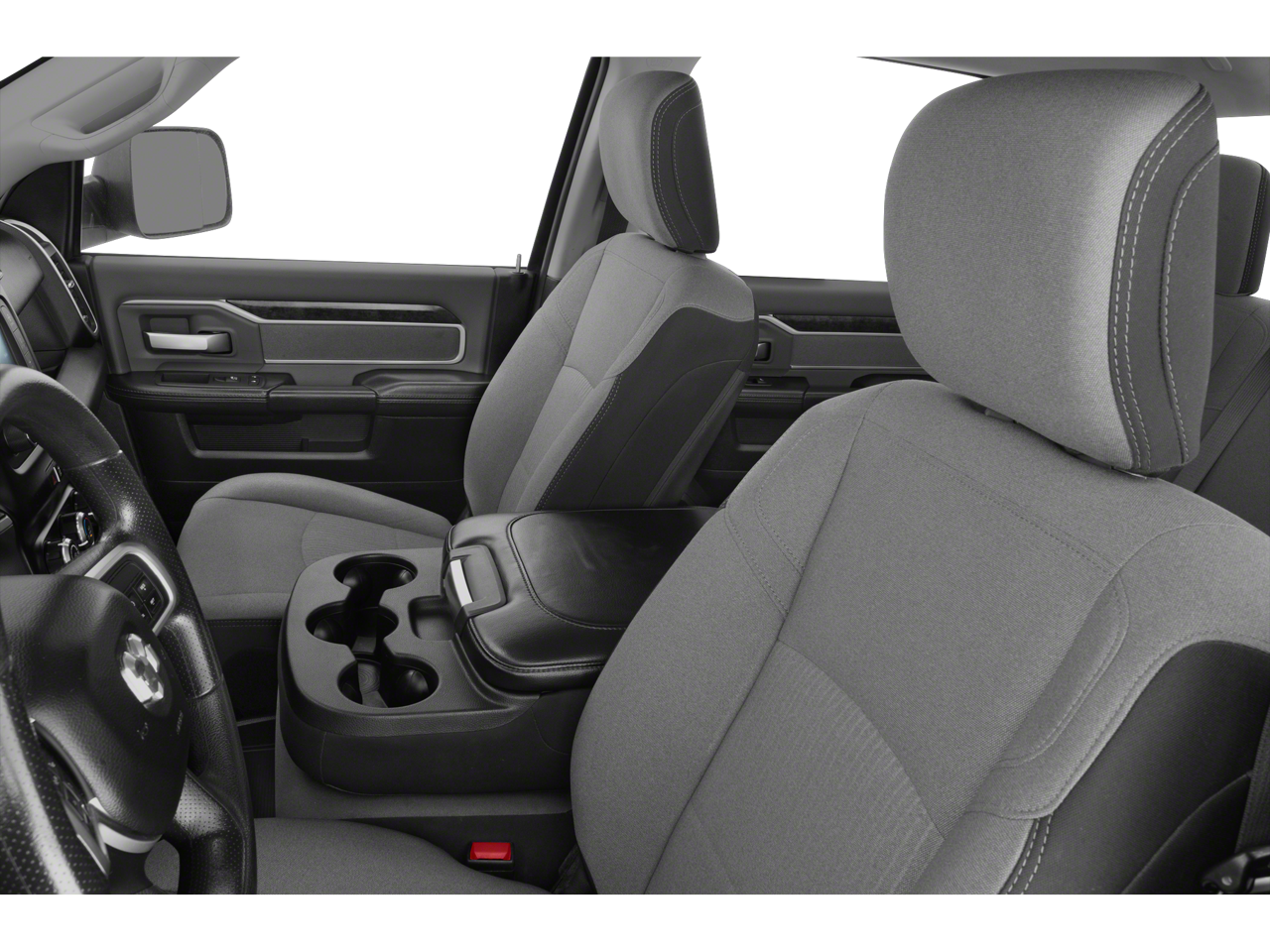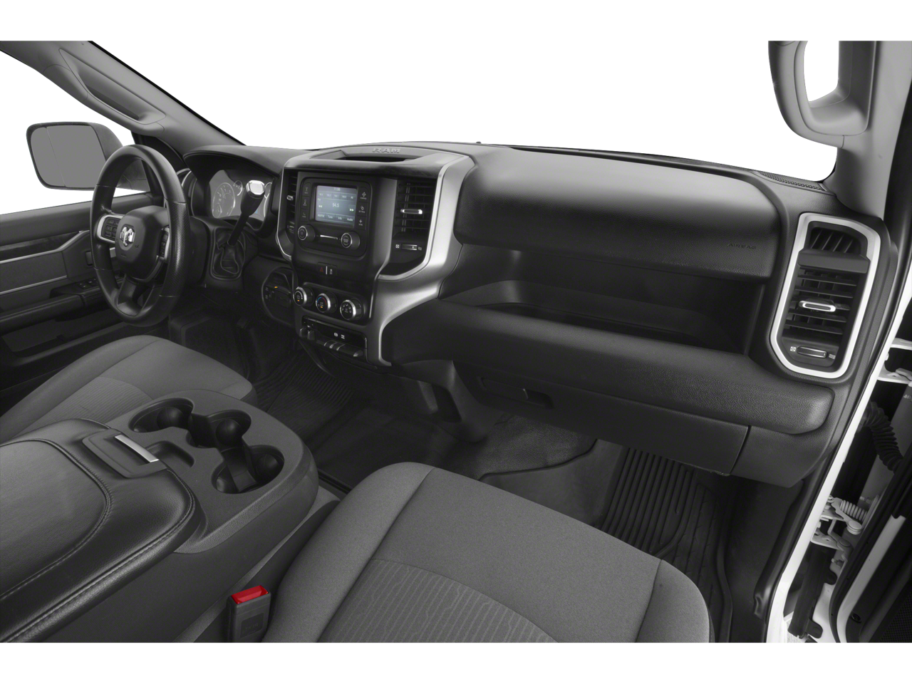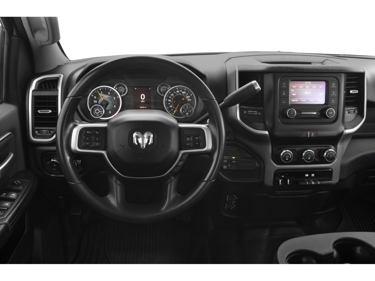 Quick Order Package 2HZ Big Horn, 2 Way Rear Headrest Seat, 3.73 Axle Ratio, 4 Way Front Headrests, 4-Wheel Disc Brakes, 40/20/40 Split Bench Seat, 6 Speakers, ABS brakes, Active Noise Control System, Air Conditioning, AM/FM radio, Brake assist, Bumpers: chrome, Center Hub, Center Stack Storage Drawer, Chrome Flat Wheel-to-Wheel Side Steps, Cloth 40/20/40 Bench Seat, Compass, Delay-off headlights, Driver door bin, Dual front impact airbags, Dual front side impact airbags, Electronic Stability Control, Electronically Controlled Throttle, Front anti-roll bar, Front Center Armrest w/Storage, Front reading lights, Fully automatic headlights, GPS Antenna Input, Heated door mirrors, Illuminated entry, Integrated Voice Command w/Bluetooth®, Low tire pressure warning, Manual Adjust 4-Way Driver Seat, Manufacturer's Statement of Origin, Occupant sensing airbag, Outside temperature display, Overhead airbag, Overhead console, Panic alarm, ParkView Rear Back-Up Camera, Passenger door bin, Passenger vanity mirror, Power door mirrors, Power steering, Power windows, Radio data system, Radio: Uconnect 3 w/5 Display, Rear anti-roll bar, Rear Folding Seat, Rear seat center armrest, Rear step bumper, Remote keyless entry, Speed control, Tachometer, Tilt steering wheel, Tip Start, Traction control, Trip computer, Turn signal indicator mirrors, USB Host Flip, Variably intermittent wipers, Vendor Painted Cargo Box Tracking, Voltmeter, and Wheels: 18 x 8.0 Steel Chrome Clad.