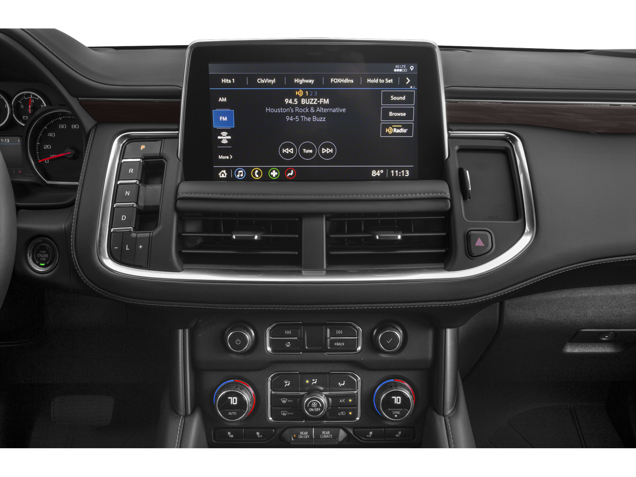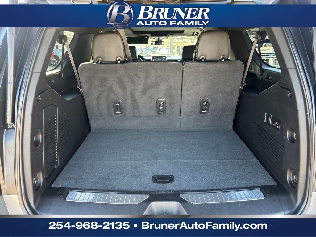 Driver Alert Package (Lane Change Alert w/Side Blind Zone Alert and Rear Cross Traffic Alert), License Plate Front Mounting Package, Luxury Package (2nd Row Pwr Release 60/40 Split-Folding Bench Seat, 3rd Row 60/40 Power-Folding Split-Bench, HD Surround Vision, Heated 2nd Row Outboard Seats, Heated Steering Wheel, Memory Settings, Outside Heated Power-Adjustable Mirrors, Power Tilt & Telescopic Steering Column, and Rear Pedestrian Alert), Preferred Equipment Group 2Z7 (10-Way Power Driver & Passenger Seat Adjusters, 1st & 2nd Row Color-Keyed Carpeted Floor Mats, 2-Speed Active Electronic AutoTrac Transfer Case, Auto-Dimming Inside Rear-View Mirror, Automatic Stop/Start, Black Tubular Assist Steps, Bose 9-Speaker Stereo Audio System Feature, Bright Front & Rear Door Sill Plates, Color-Keyed Carpeting Floor Covering, Driver & Front Outboard Passenger Airbags, Enhanced Driver Information Center, Floor Console w/Storage Area, Front & Rear Park Assist, Front High-Approach Angle Fascia, Hands-Free Rear Power Programmable Liftgate, Heated Driver & Front Passenger Seats, Hill Descent Control, Infotainment Display, Leather-Wrapped Steering Wheel, LED Daytime Running Lamps, Memory Settings For Driver, Red Recovery Hooks, Remote Start, SiriusXM Radio w/360L, Start/Stop System Disable Button, Universal Home Remote, and Wireless Charging), 3.23 Rear Axle Ratio, 3rd row seats: split-bench, 4-Wheel Disc Brakes, 9 Speakers, ABS brakes, Air Conditioning, Alloy wheels, AM/FM radio: SiriusXM with 360L, Apple CarPlay/Android Auto, Auto High-beam Headlights, Auto-dimming Rear-View mirror, Automatic temperature control, Brake assist, Bumpers: body-color, Compass, Delay-off headlights, Driver door bin, Driver vanity mirror, Dual front impact airbags, Dual front side impact airbags, Dual-Pane Power Panoramic Sunroof, Electronic Stability Control, Emergency communication system: OnStar and Chevrolet connected services capable, Four wheel independent suspension, Front anti-roll bar, Front Bucket Seats, Front Center Armrest, Front dual zone A/C, Front reading lights, Fully automatic headlights, Garage door transmitter, Heated door mirrors, Heated front seats, Illuminated entry, Leather steering wheel, Leather-Appointed Seating, Low tire pressure warning, Memory seat, Navigation System, Not Equipped w/Steering Column Lock, Occupant sensing airbag, Outside temperature display, Overhead airbag, Overhead console, Panic alarm, Passenger door bin, Passenger vanity mirror, Power door mirrors, Power driver seat, Power Liftgate, Power passenger seat, Power Release 2nd Row Bucket Seats, Power steering, Power windows, Premium audio system: Chevrolet Infotainment 3 Premium, Premium Smooth Ride Suspension, Radio: Chevrolet Infotainment 3 Premium System, Rain sensing wipers, Rear air conditioning, Rear anti-roll bar, Rear reading lights, Rear seat center armrest, Rear window defroster, Rear window wiper, Remote keyless entry, Roof rack: rails only, Security system, Speed control, Speed-sensing steering, Split folding rear seat, Spoiler, Steering wheel mounted audio controls, Tachometer, Telescoping steering wheel, Tilt steering wheel, Traction control, Trip computer, Variably intermittent wipers, Voltmeter, and Wheels: 20 x 9 Machined Aluminum.