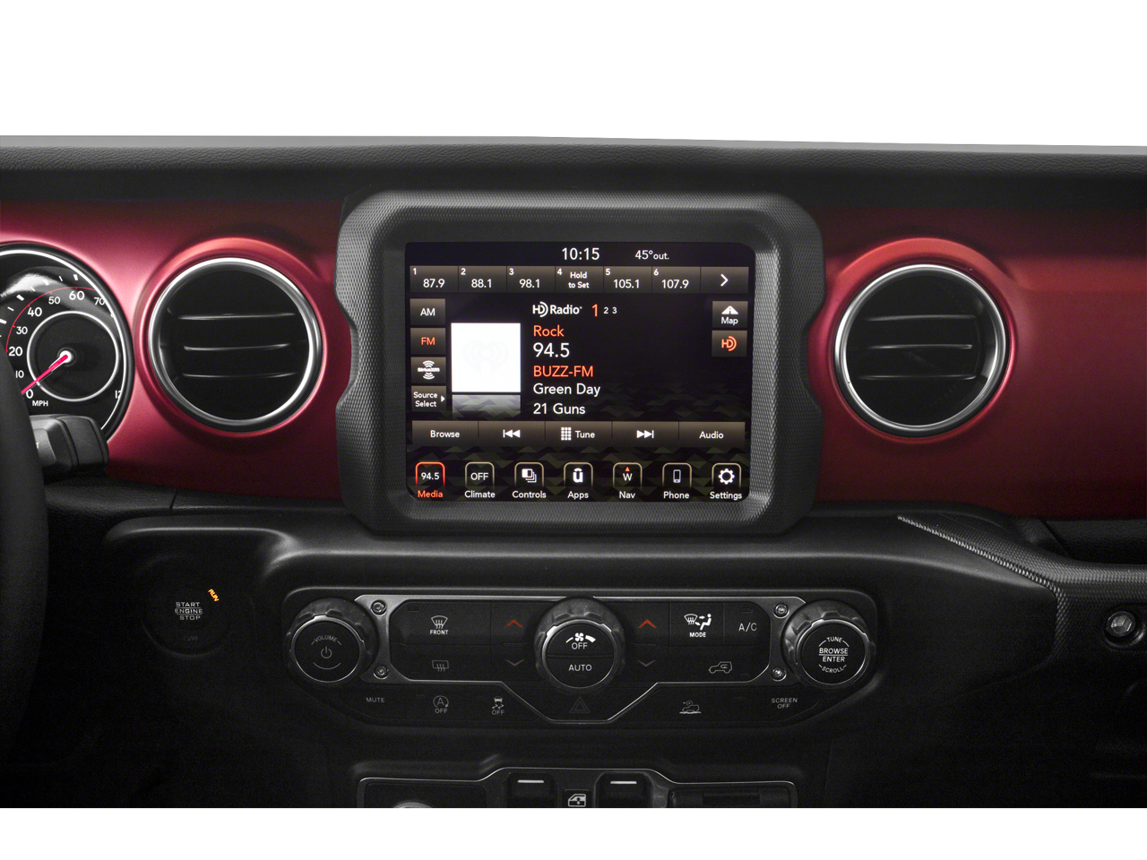 Auxiliary Switch Group (240 Amp Alternator, 700 Amp Maintenance Free Battery, and Auxiliary Switches), Cold Weather Group (Heated Front Seats and Heated Steering Wheel), Quick Order Package 24R, Trailer Tow Package (Class IV Receiver Hitch, Heavy-Duty Engine Cooling, and Trailer Hitch Zoom), 4-Wheel Disc Brakes, 4.10 Rear Axle Ratio, 9 Speakers, 97 MPH Vehicle Max Speed Calibration, ABS brakes, Air Conditioning, Alloy wheels, AM/FM radio: SiriusXM, Apple CarPlay/Android Auto, Auto-dimming Rear-View mirror, Automatic temperature control, Body Color 3-Piece Hard Top, Body Color Fender Flares (2-Piece), Brake assist, Compass, Corning Gorilla Glass, Delay-off headlights, Driver door bin, Driver vanity mirror, Dual front impact airbags, Dual front side impact airbags, Electronic Stability Control, Emergency communication system: SiriusXM Guardian, Freedom Panel Storage Bag, Front anti-roll bar, Front Bucket Seats, Front Center Armrest w/Storage, Front dual zone A/C, Front fog lights, Front License Plate Bracket, Front reading lights, Fully automatic headlights, Garage door transmitter, Heated door mirrors, Illuminated entry, Integrated roll-over protection, Leather steering wheel, Low tire pressure warning, MOPAR All-Weather Slush Mats, MOPAR Spray In Bedliner, Navigation System, No Soft Top, Occupant sensing airbag, Outside temperature display, Panic alarm, ParkView Rear Back-Up Camera, Passenger door bin, Passenger vanity mirror, Performance Suspension, Power door mirrors, Power steering, Power windows, Premium Cloth Low-Back Bucket Seats, Radio data system, Radio: Uconnect 4C Nav w/8.4 Display, Rear anti-roll bar, Rear reading lights, Rear Sliding Window, Rear Window Defroster, Remote keyless entry, Remote Start System, Security system, Speed control, Split folding rear seat, Steering wheel mounted audio controls, Tachometer, Telescoping steering wheel, Tilt steering wheel, Traction control, Trip computer, Variably intermittent wipers, Voltmeter, and Wheels: 17 x 7.5 Granite Crystal Aluminum.