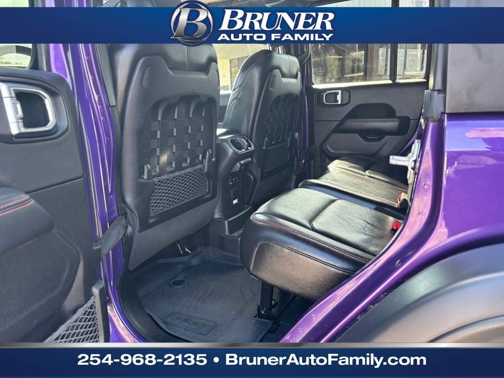 Quick Order Package 25R Rubicon, Xtreme 35 Tire Package (35 Tire Suspension, Anti-Lock 4-Wheel Disc Perf Brakes, Dana M210 Wide HD Tube Front Axle, MOPAR Hinge-Gate Reinforcement, Wheel Flare Extensions, and Wheels: 17 x 8 Beadlock Capable), 4-Wheel Disc Brakes, 9 Speakers, ABS brakes, Air Conditioning, Alloy wheels, AM/FM radio: SiriusXM, Apple CarPlay/Android Auto, Auto-dimming Rear-View mirror, Automatic temperature control, Aux Battery, Black 3-Piece Hard Top, Brake assist, Compass, Delay-off headlights, Driver door bin, Driver vanity mirror, Dual front impact airbags, Dual front side impact airbags, Electronic Stability Control, Emergency communication system: SiriusXM Guardian, Engine Oil Cooler, Freedom Panel Storage Bag, Front anti-roll bar, Front Bucket Seats, Front Center Armrest w/Storage, Front Differential Electronic Lock w/Axle Disconnect, Front dual zone A/C, Front fog lights, Front License Plate Bracket, Front reading lights, Fully automatic headlights, Garage door transmitter, Heated door mirrors, Illuminated entry, Integrated roll-over protection, Low tire pressure warning, MOPAR All-Weather Floor Mats, Navigation System, No Soft Top, Non-Lock Fuel Cap w/o Discriminator, Occupant sensing airbag, Outside temperature display, Panic alarm, ParkView Rear Back-Up Camera, Passenger door bin, Passenger vanity mirror, Performance Suspension, Power door mirrors, Power steering, Power windows, Premium Cloth Low-Back Bucket Seats, Radio data system, Radio: Uconnect 4C Nav w/8.4 Display, Rear anti-roll bar, Rear reading lights, Rear Window Defroster, Rear Window Wiper/Washer, Remote keyless entry, Security system, Speed control, Split folding rear seat, Steering wheel mounted audio controls, Stop-Start Dual Battery System, Tachometer, Telescoping steering wheel, Tilt steering wheel, Traction control, Trip computer, Variably intermittent wipers, Voltmeter, and Wheels: 17 x 7.5 Machined/Painted Black.