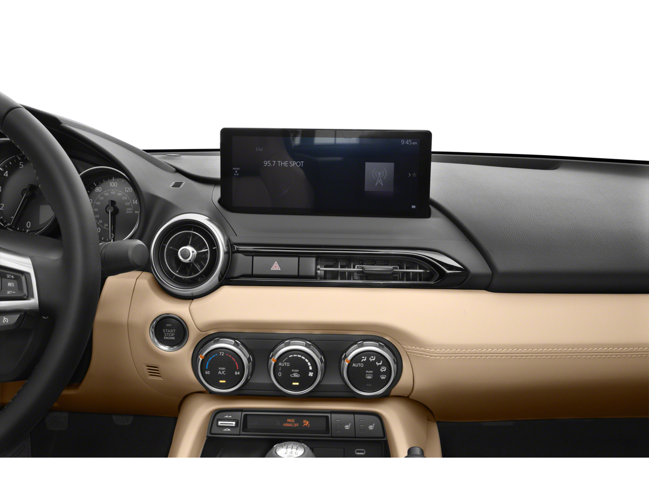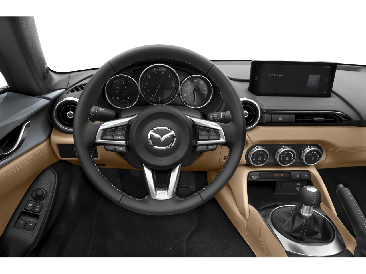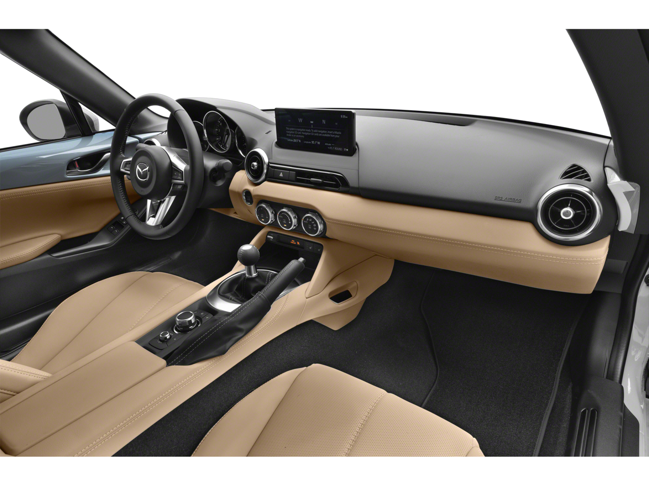 4-Wheel Disc Brakes, 9 Speakers, ABS brakes, Air Conditioning, All Weather Floor Mats, Alloy wheels, AM/FM radio: SiriusXM, AppLink/Apple CarPlay and Android Auto, Auto High-beam Headlights, Auto-dimming door mirrors, Auto-dimming Rear-View mirror, Automatic temperature control, Brake assist, Bumpers: body-color, Cargo Net, Convertible HardTop, Convertible roof lining, Convertible roof wind blocker, Delay-off headlights, Driver vanity mirror, Dual front impact airbags, Dual front side impact airbags, Electronic Stability Control, Emergency communication system: MAZDA CONNECT, Exterior Parking Camera Rear, First Aid Kit, Four wheel independent suspension, Front anti-roll bar, Front Bucket Seats, Front Center Armrest, Fully automatic headlights, Garage door transmitter: HomeLink, Glass rear window, Heated door mirrors, Heated Front Bucket Seats, Heated front seats, Illuminated entry, Leather Shift Knob, Leather Upholstery, Low tire pressure warning, MAZDA CONNECT Infotainment System, Navigation System, Occupant sensing airbag, Outside temperature display, Panic alarm, Passenger vanity mirror, Power convertible roof, Power door mirrors, Power steering, Power windows, Radio data system, Radio: Bose Audio System w/AudioPilot, Rain sensing wipers, Rear anti-roll bar, Rear window defroster, Remote keyless entry, Roadside Assistance Kit, Soul Red Crystal Paint Charge, Speed control, Speed-sensing steering, Sport steering wheel, Steering wheel mounted audio controls, Tachometer, Telescoping steering wheel, Tilt steering wheel, Traction control, Trip computer, Variably intermittent wipers, Wheel Locks, and Wheels: 17 Metallic Black Alloy.